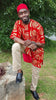 Kwe Red and Gold African Velvet Isiagu Igbo Shirt-DP3820