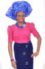 Fuchsia Pink African Guipure Cord Lace Top and Velvet Wrapper-DP