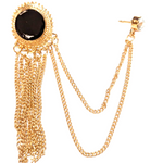 **Traditional Wear:** This lapel pin is perfect for enhancing the classic look of blazers and jackets. Pin it on the lapel of your favorite suit to make a bold statement at formal events, weddings, or business meetings. The combination of the black stone and gold chains creates a captivating contrast, ensuring that you stand out with elegance.