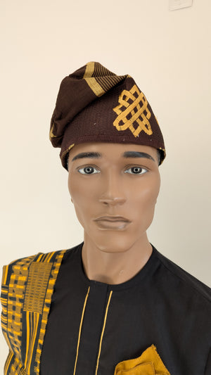 Dupsie's Wadeola Striped Brown and Gold Handwoven Aso Oke Fila kufi cap Hat DPHABG58